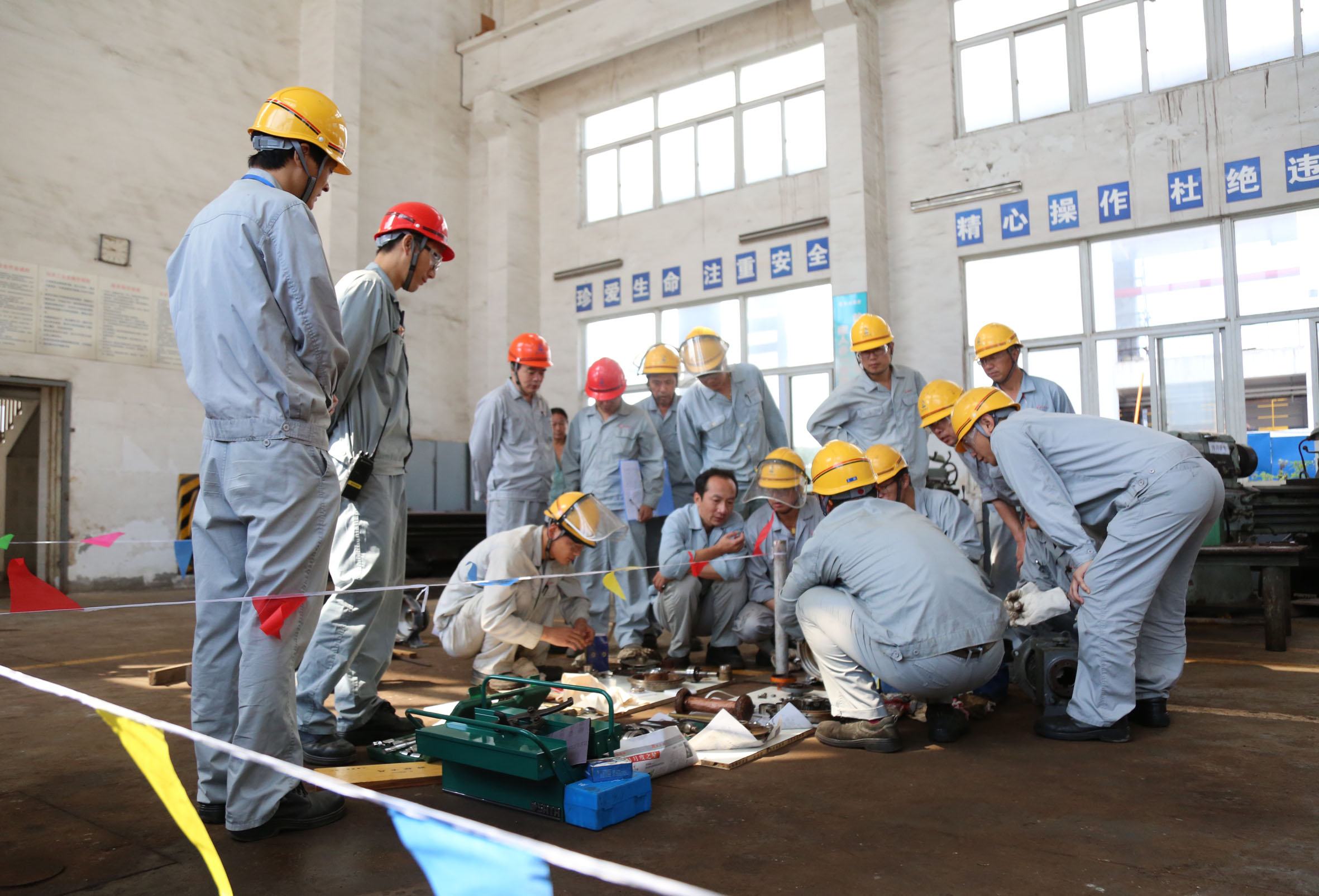 由于受場地的限制和比賽人數(shù)較多的影響,三個工種的比武分了多個場次進行。參賽人員既有年輕的小伙子,也有人到中年的老師傅。比武時,有時天氣炎熱,汗如雨下,有時暴雨如注,雷聲滾滾,參賽人員不為所動,只專注于手中的比賽項目。